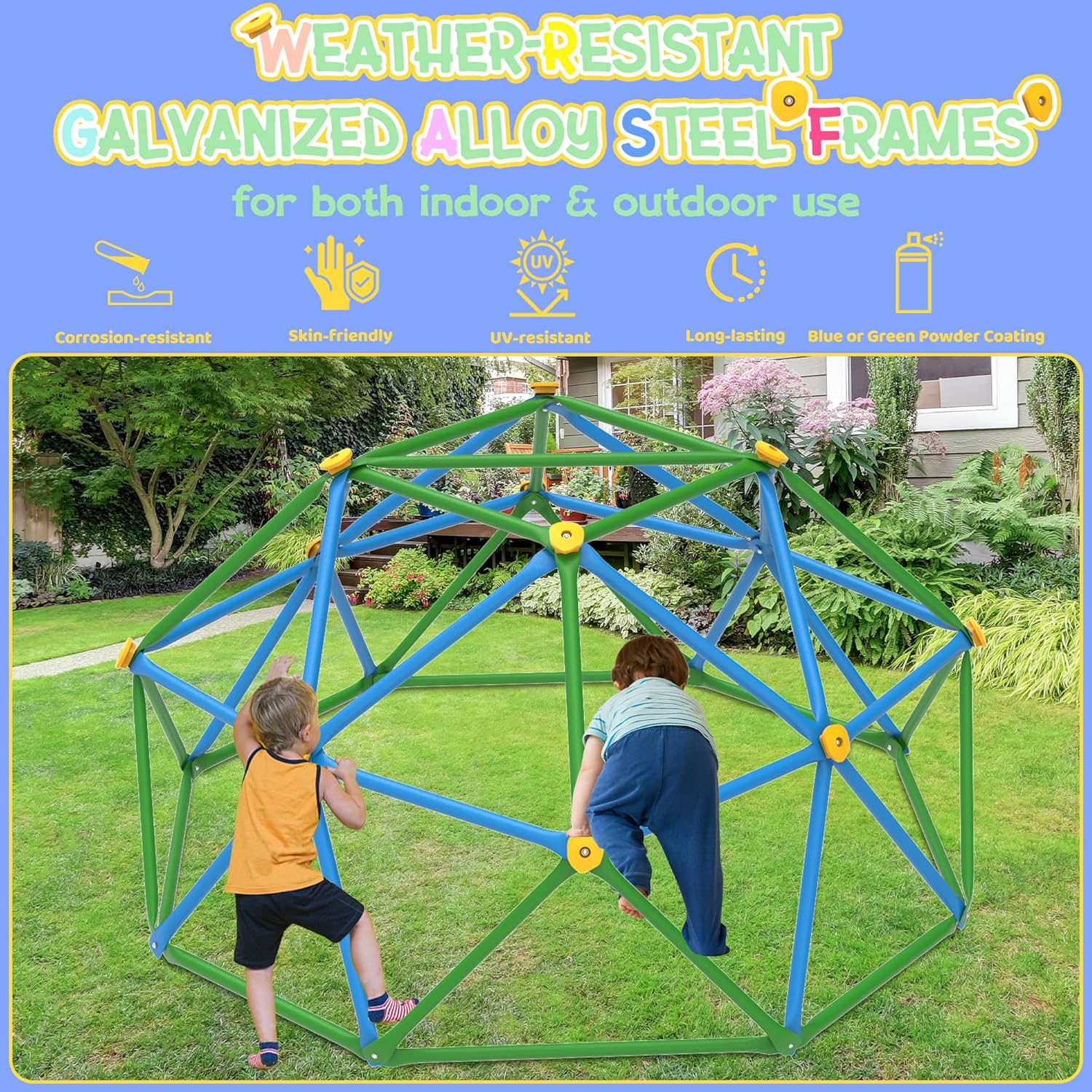 - All-Weather Anti-Rust Build: Premium powder-coated metal resists rust, UV fading, and corrosion, perfect for both sunny backyard days and indoor playroom adventures.